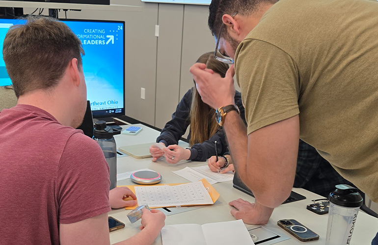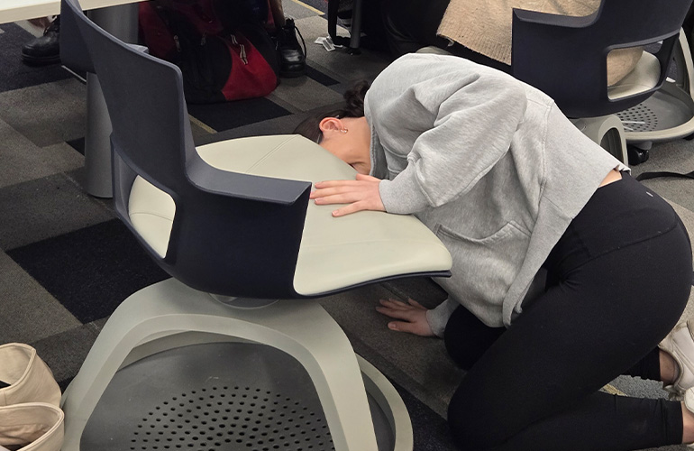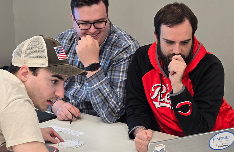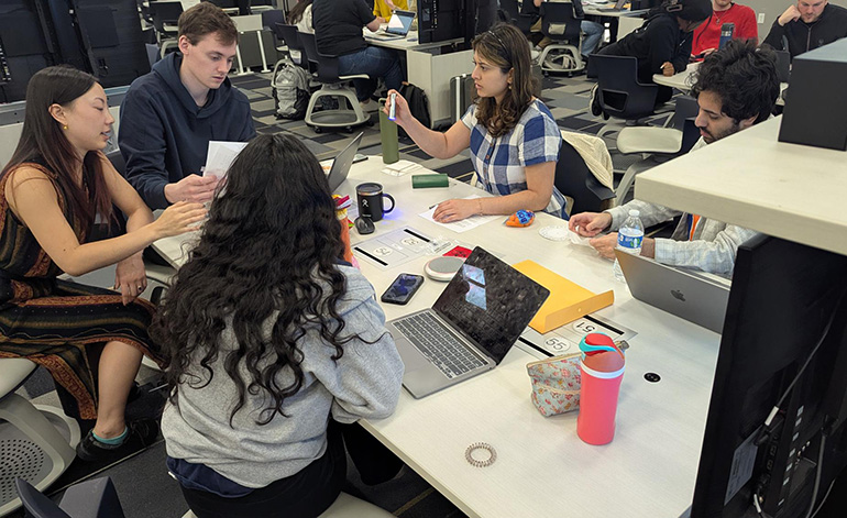 That was the scenario given to first-year medical students in the Health Systems course review session on May 21. Course directors Amy Lee, M.D., M.P.H., M.B.A., Kris Baughman, Ph.D., and Stacey Gardner-Buckshaw, Ph.D., set up this activity in the Great Hall, which was full of determined teams of students who used the activity to prepare for their Friday exam.
