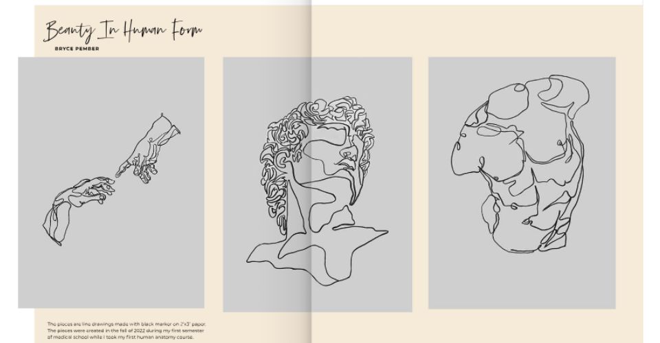 The latest issue of The Human Touch, an arts and literature journal published out of The University of Colorado's Medical College, features visual art by NEOMED students Henyah W. Dardir (rising M2) and Bryce Pember (rising M3). Congratulations to both on this recognition of artistic talent.