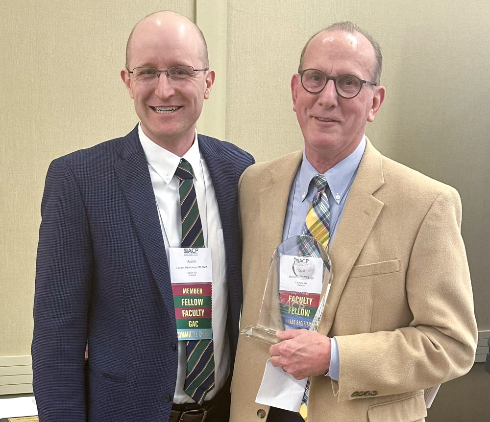 Below is Dr. Lunne (right) receiving his award from Awards Committee member Austin Fredrickson, M.D., FACP.