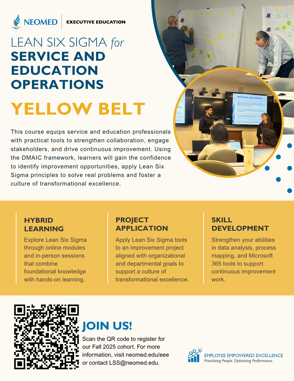 Curious about how Lean Six Sigma training can support your role at NEOMED? Explore the flyer below to learn more about the upcoming Yellow Belt course, including course dates, registration deadlines and contact information.