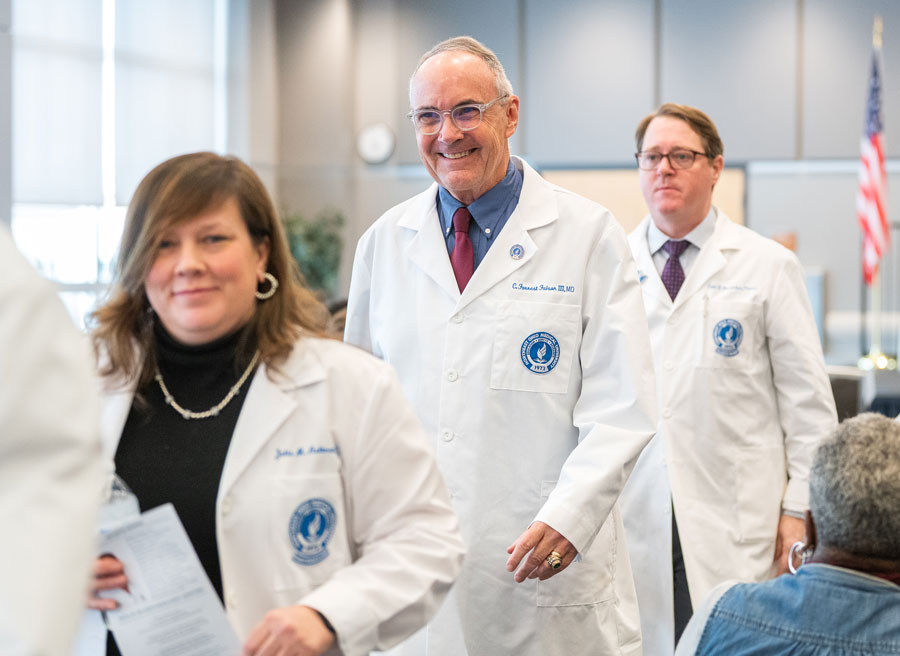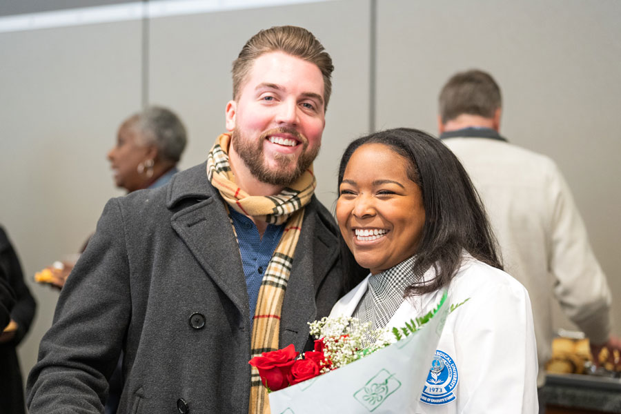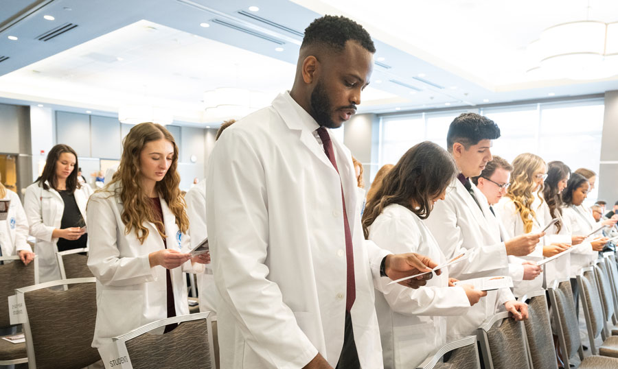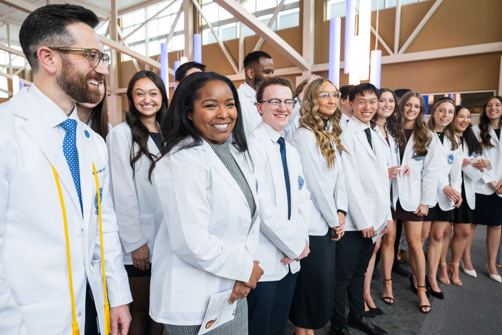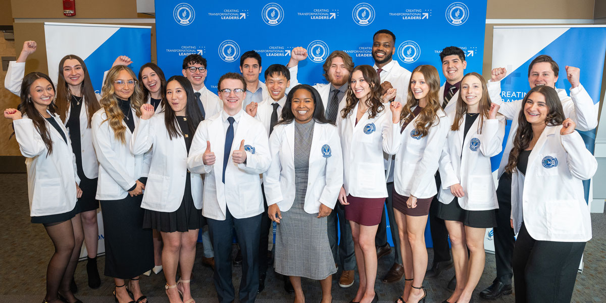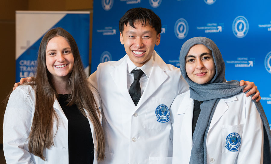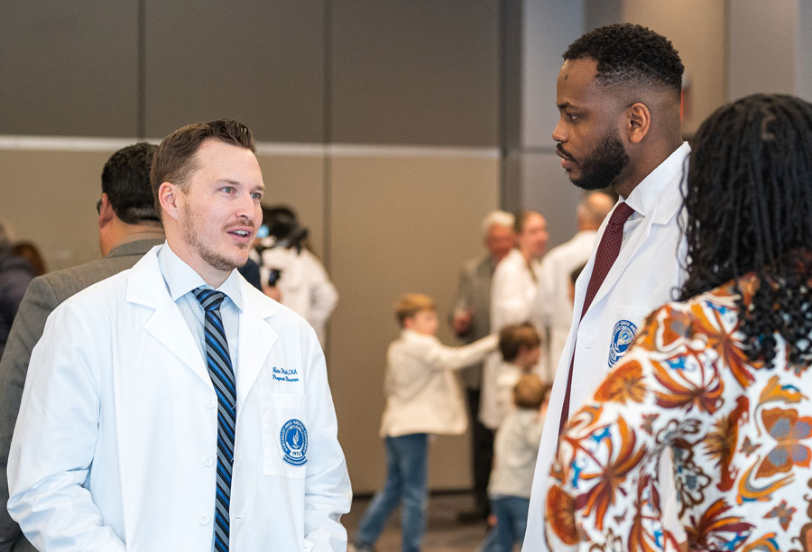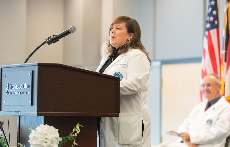 While students from the Master of Medical Science in Anesthesia (M.M.Sc.A.) Class of 2027 arrived and began coursework in early January, they had their “official” welcome to NEOMED and the health care professions at the White Coat Ceremony on Friday, Feb. 21. The date coincided with the conclusion of CAA Week, which recognizes the vital role that Certified Anesthesiologist Assistants play on the surgical team.