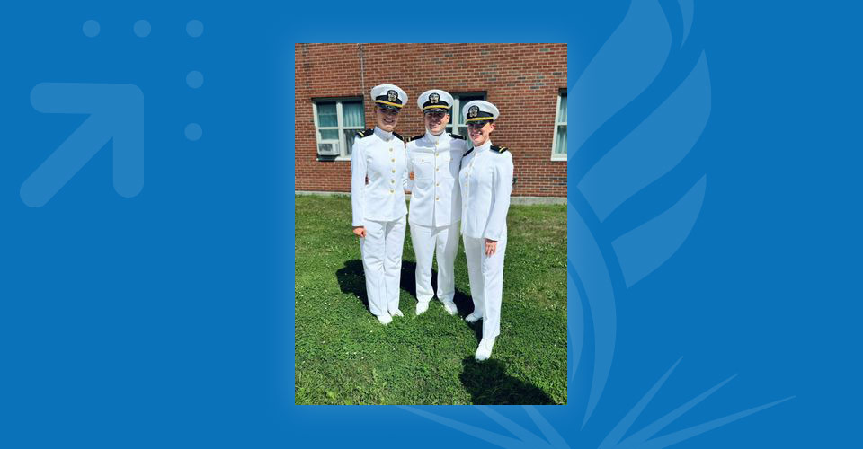 Three College of Medicine students -- ENS Brian Fogarty (M2), ENS Abbey Henderson (M3) and ENS Alexa Mier (M3)-- recently celebrated their graduation from Navy Officer Development School at Naval Station Newport in Rhode Island, after five weeks of training. Their training is part of the Health Professions Scholarship Program (HPSP), made available by the U.S. Military. Second-year student Brian Fogarty shared his experience with the Pulse: