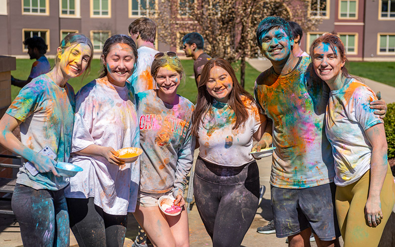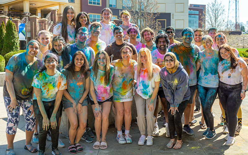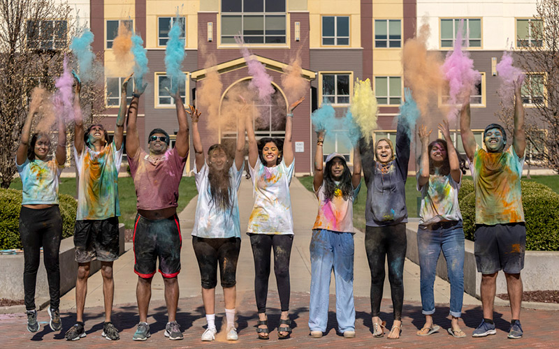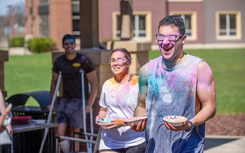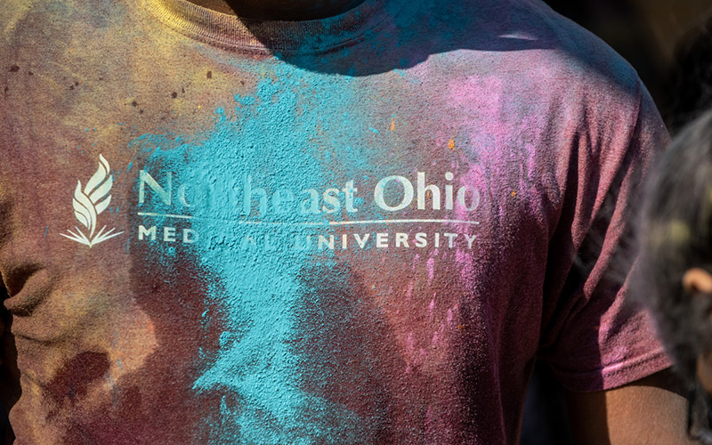 Clouds of colorful powder filled the air near The Village apartments on NEOMED’s campus on April 10 as students gathered to celebrate Holi, a centuries-old Hindu tradition that marks the arrival of spring and celebrates love and the triumph of good over evil.