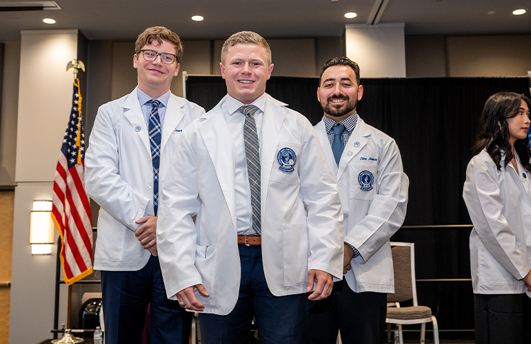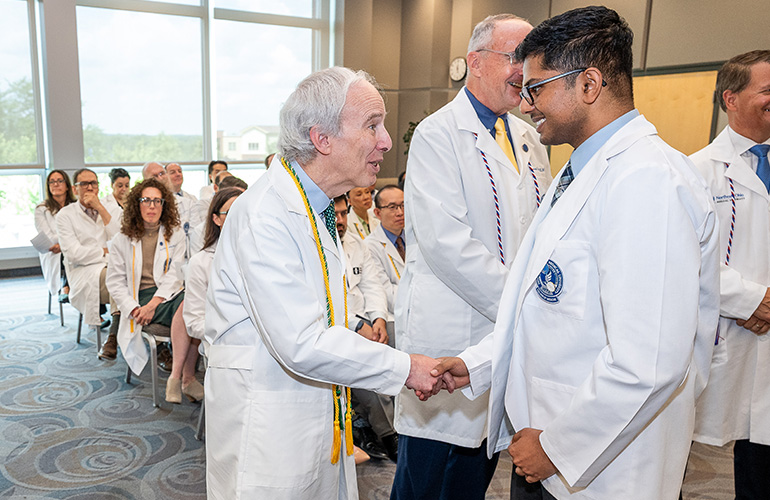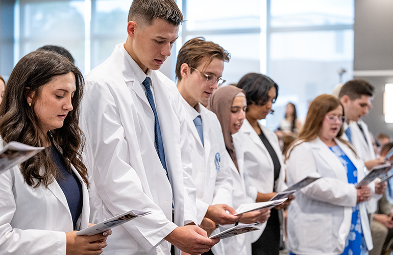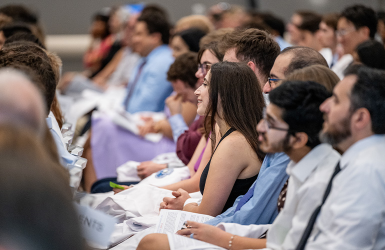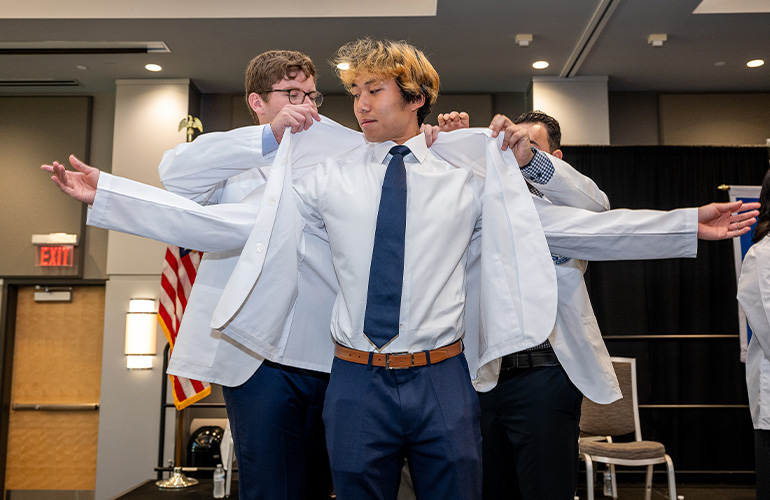 We welcomed a record-setting cohort of 201 aspiring physicians at Friday’s White Coat Ceremony. In front of family members and faculty, each student received their white coat — a symbol of the medical profession — and embraced the weight of their new responsibility.