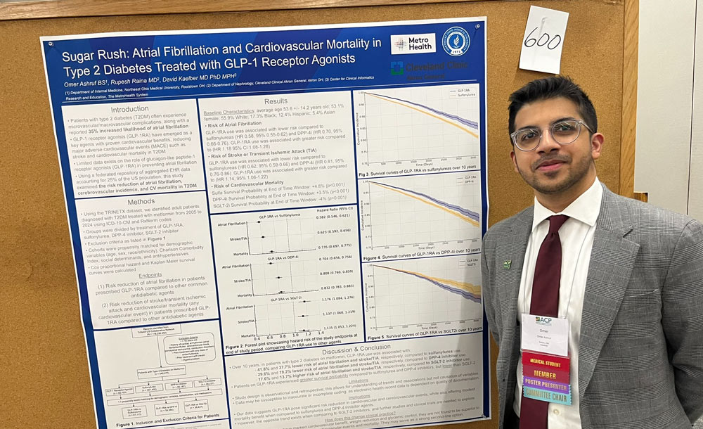 Omer Ashruf, below, M4, won 1st Place in Clinical Research for "Sugar Rush: Atrial Fibrillation and Cardiovascular Mortality in Diabetics Treated with GLP-1 Agonists".