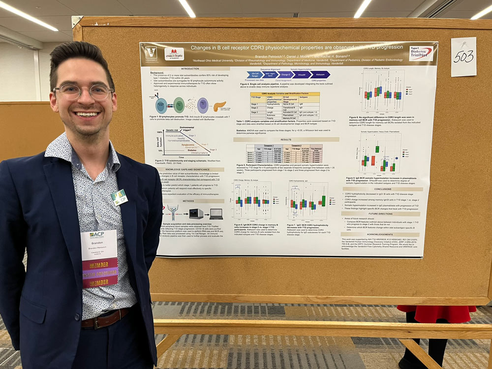 Brandon Petrovich, below, M3, won 1st Place in Basic Science Research for "Changes in B Cell Receptor CDR3 Physiochemical Properties are Observed with Type 1 Diabetes Progression."