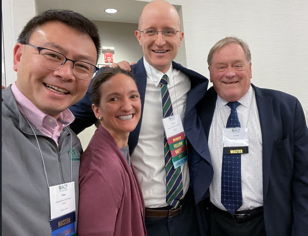 Below is Joseph Myers, M.D., MACP, Professor of Internal Medicine, who received the Mastership within the ACP: one of only 20 members in Ohio to receive the distinction. In that photo is Michael Tan, M.D., MACP, (left), Stephanie Zaugg, D.O., Pharm.D., FACP, (2nd from left), Myers (3rd from left), and Fredrickson (right).