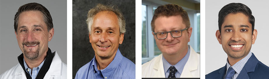 Above, from left: Edward Ferris, M.D., FACOG, Paul Hartung, Ph.D., Thomas Macabobby, M.D., FAAFP, and Neel Parekh, M.D. (’13).