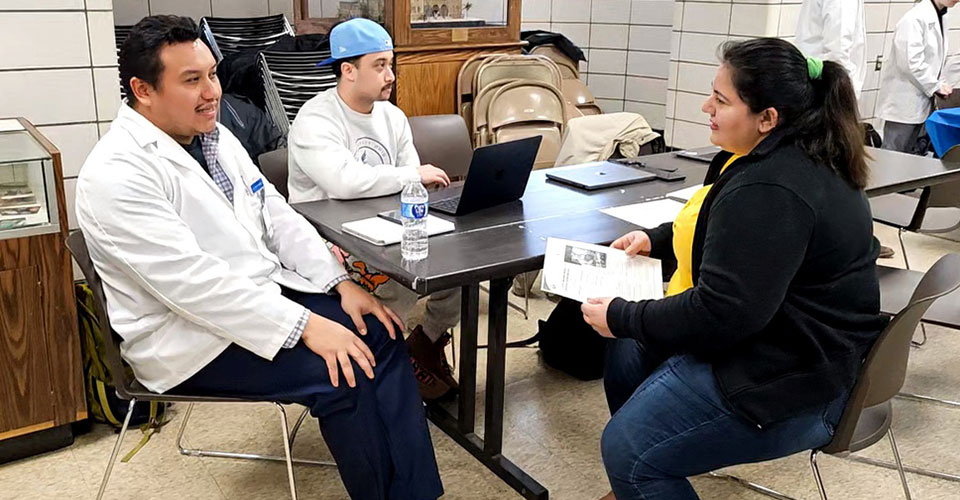 NEOMED students and faculty practice their Spanish at the annual LMSA Health Fair in Akron this past January.