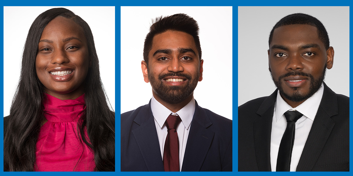 Pictured above: Brianna Owairu (M2), Ankit Patel (M3) and Jonas St. Fleur (M3)