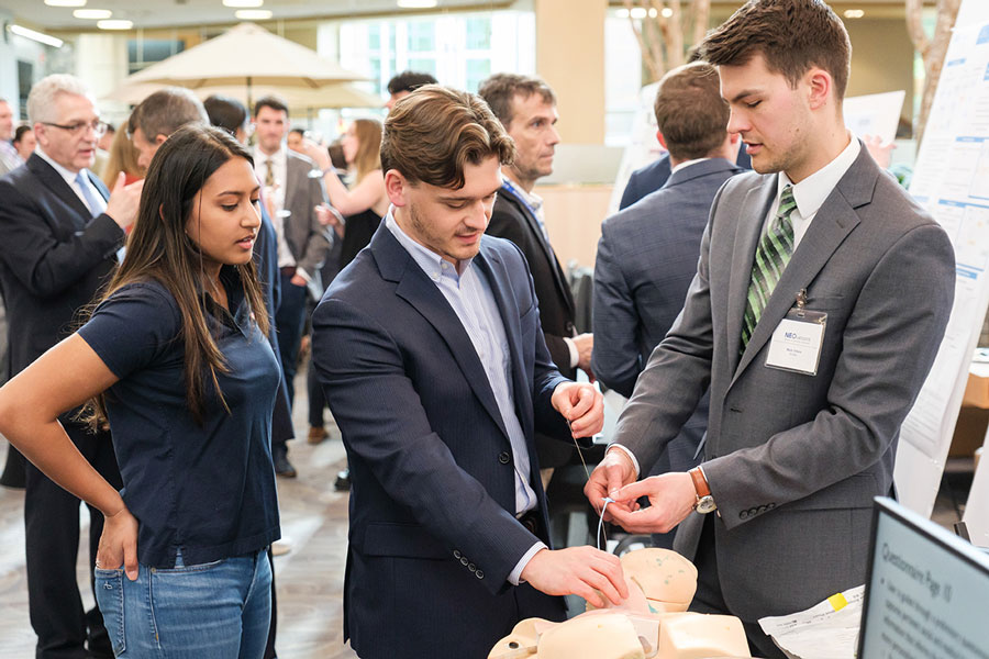 During the showcase, student teams will present medical devices and technologies that address unmet patient needs. Their goal is to bring these innovations to market. Teams develop their projects throughout the year, working with investors, attorneys, researchers and other leaders in health care to learn the bench-to-bedside process.