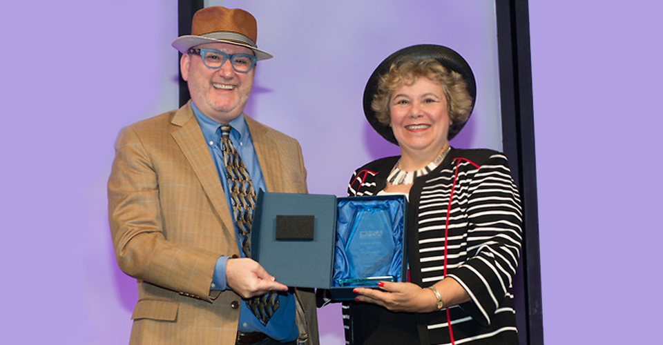Jeanette Killius, a former instructor of Microscopic Anatomy and supervisor of Electron Microscopy, was recently elected a Fellow in the Microscopy Society of America (MSA), for “her selfless dedication to the field of microscopy in research, applications, and educational outreach, and for her personification of excellence and professionalism.” Killius, who retired from NEOMED in 2016 after 37 years of service, was nominated by her peers. In August, MSA President Ian Anderson presented Killius with a commemorative plaque during the annual Microscopy and Microanalysis conference being held in St. Louis, Missouri. The honor of Fellow is bestowed upon only a small, selective group each year.