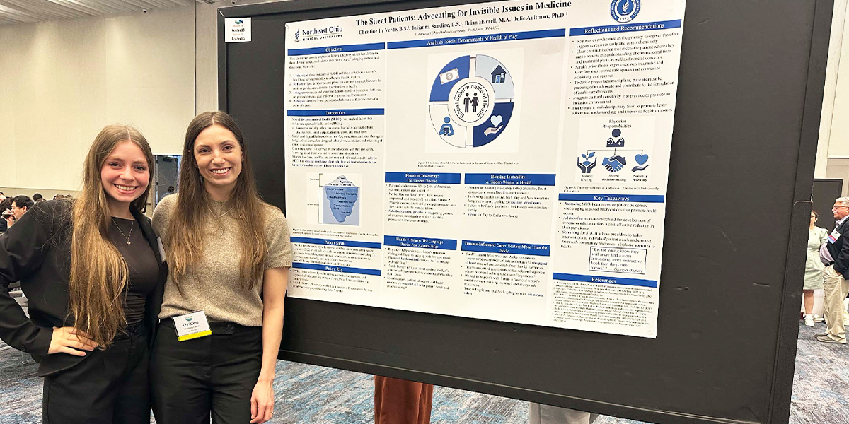 Sandine and Lo Verde’s research highlights the critical role of caregivers, who frequently face physical, emotional and financial strain while supporting loved ones, yet are often unrecognized in clinical practice. Their work is part of a growing body of student scholarship at NEOMED, developed in collaboration with Julie Aultman, Ph.D., dean of the College of Graduate Studies, and Brian Harrell, Writing Center specialist. Together, they are building research that blends medical education, ethics and narrative medicine, contributing to NEOMED’s mission to prepare students as advocates for both patients and families.