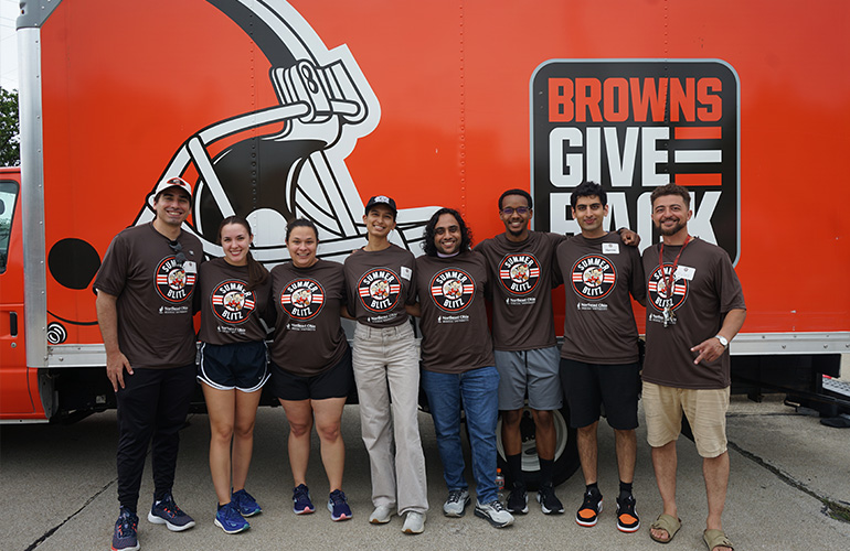 A group of NEOMED students, faculty and staff volunteered with the Cleveland Browns for the eighth annual Summer Blitz. The community service event was held at the CrossCountry Mortgage Campus on June 17.