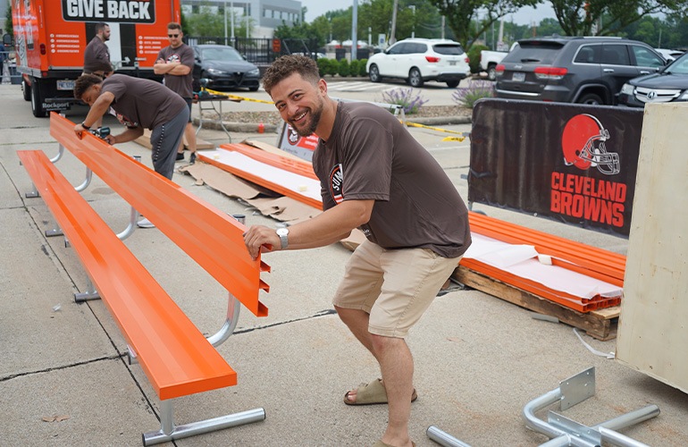 Volunteers from NEOMED, the Browns organization and the community completed a variety of projects representing the three core areas of the Browns’ philanthropic initiative, Browns Give Back: education, youth football and creating equitable opportunities for advancement in Ohio.