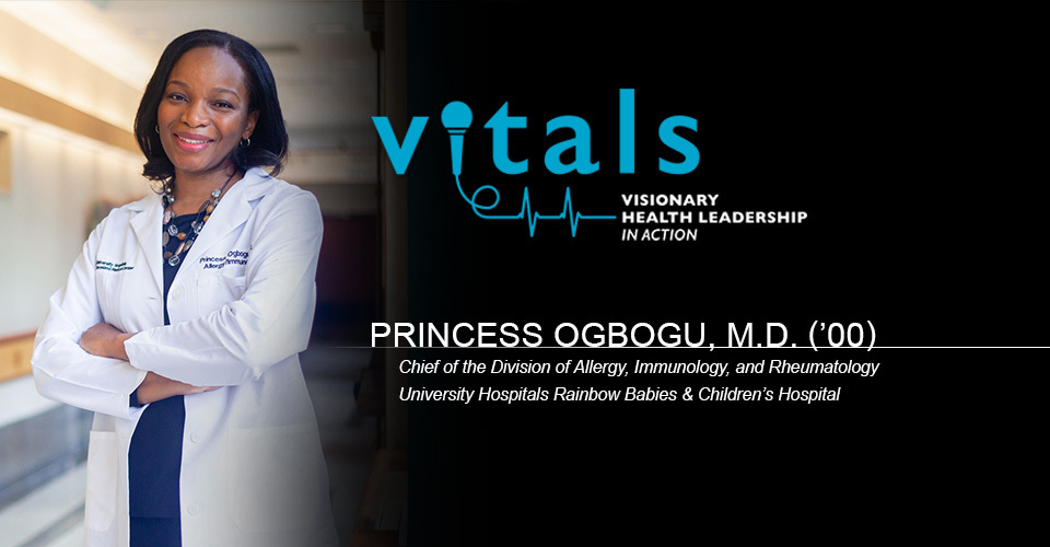 Princess Ogbogu, M.D. (’00), director of the Division of Pediatric Allergy, Immunology and Rheumatology at University Hospitals Rainbow Babies & Children’s, joins VITALS at noon May 4, in Watanakunakorn Audioritum and via Zoom.