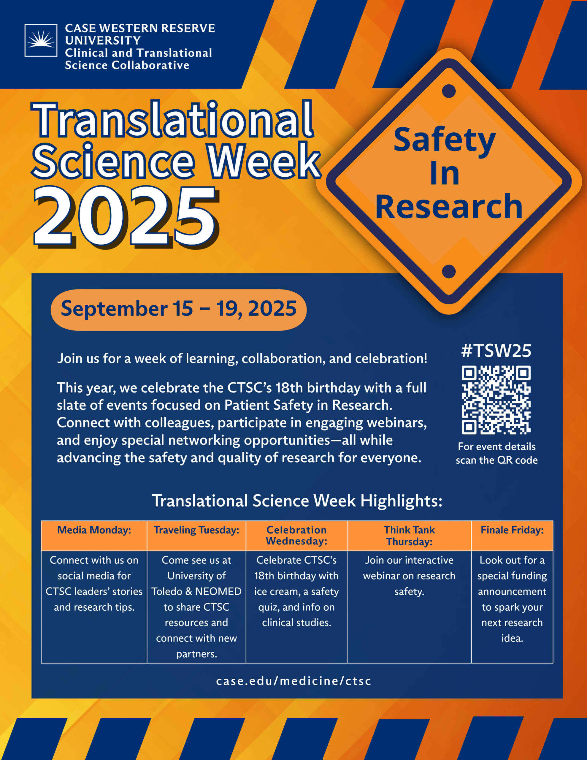 As part of the Clinical and Translational Science Collaborative (CTSC) of Northern Ohio, NEOMED will host a luncheon during Translational Science Week 2025.