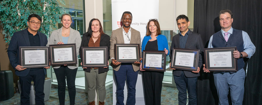 The honorees are recognized for their outstanding achievements and their commitment to representing the core values of both University Hospitals and NEOMED. Certificates of recognition were presented by NEOMED President John Langell, M.D. and Daniel Simon, M.D., president for academic and external affairs, and chief scientific officer, University Hospitals Health System.