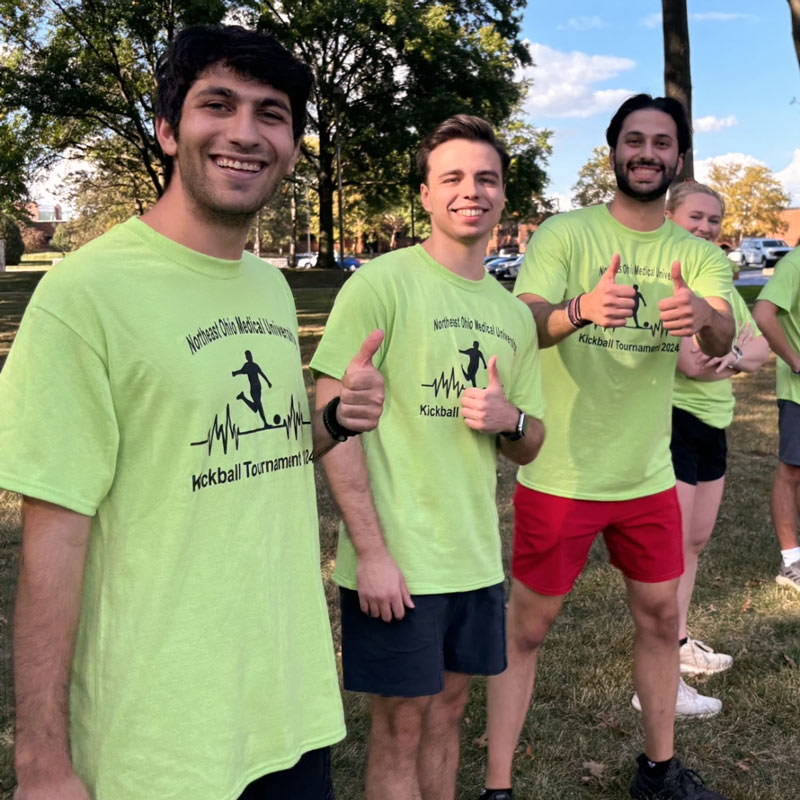 Trailing 13 to 2 entering the final inning, supposedly unbiased referee Brian Butler pulled one final trick to try and spur an employee comeback. With the strength of three oxen, he single-handedly pulled the soccer goal from the far end of the field into the kickball diamond and announced that any employee kick that landed in the goal would be scored a home-run. The unflappable students handled this completely unwarranted gesture with the grace of champions, and quickly ended the game with their closer, first-year pharmacy student, Jacob Sirofchuck, on the mound. Somewhere far in the distance, fireworks erupted signaling the close of another successful NEOMED Faculty-Student Kickball Game.