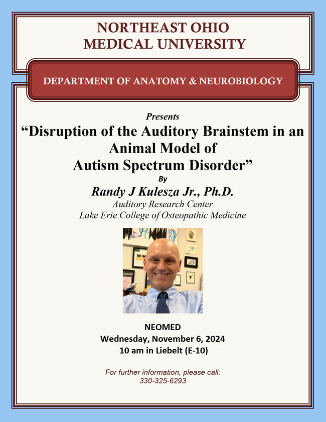 Anatomy and Neurobiology presents, 'Disruption of the Auditory Brainstem in an Animal Model of Autism Spectrum Disorder'
