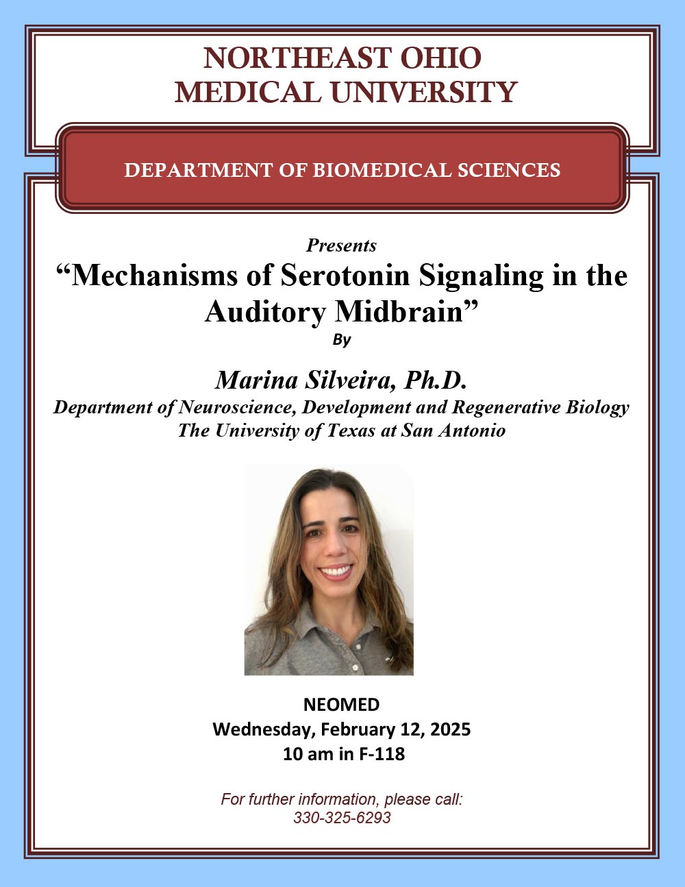 Biomedical Sciences presents, “Mechanisms of Serotonin Signaling in the Auditory Midbrain”