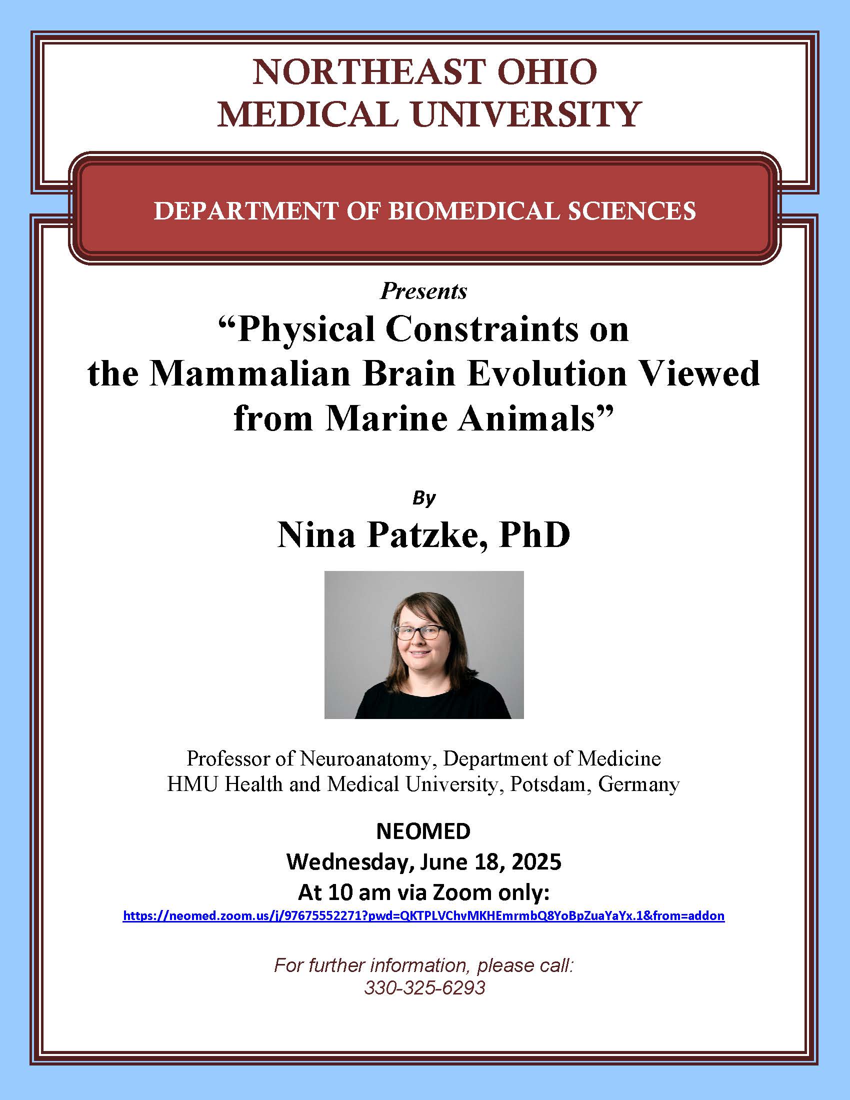 Biomedical Sciences presents, “Physical Constraints on the Mammalian Brain Evolution Viewed from Marine Animals”