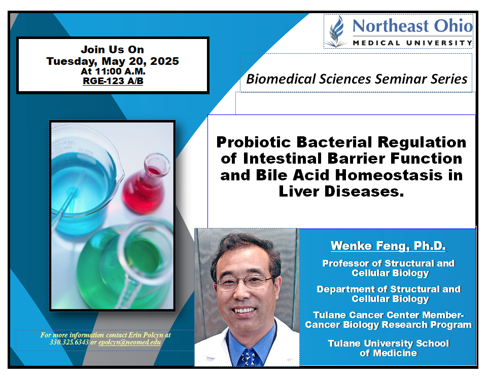 Biomedical Sciences Seminar Series: 'Probiotic Bacterial Regulation of Intestinal Barrier Function and Bile Acid Homeostasis in Liver Diseases'