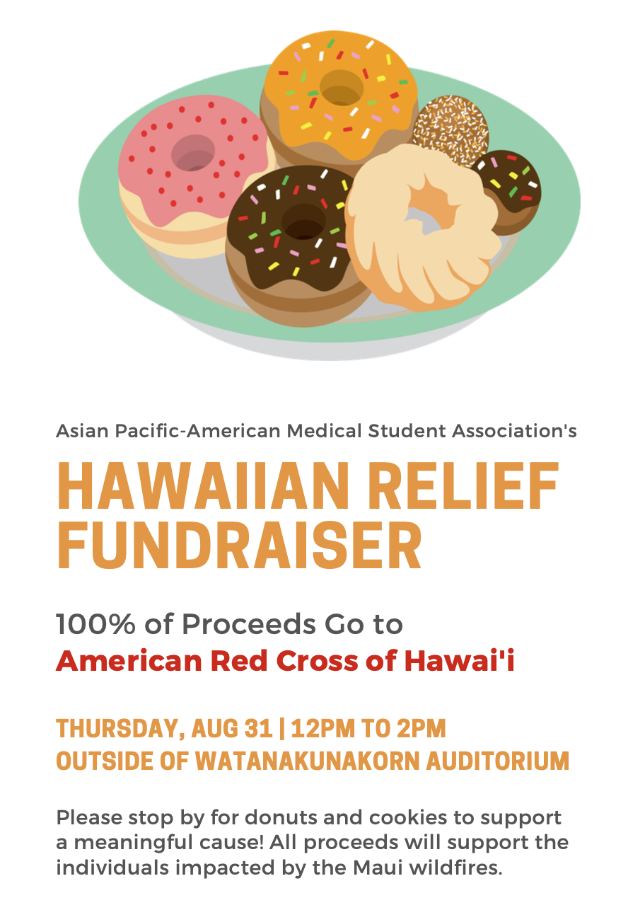 Asian Pacific-American Medical Student Association (APAMSA) will hold a bake sale fundraiser from noon to 2 p.m. this Thursday, Aug. 31 outside of Watanakunakorn Auditorium to support the individuals who have been impacted by the Maui wildfires. All proceeds will go to the American Red Cross of Hawai'i toward relief efforts.