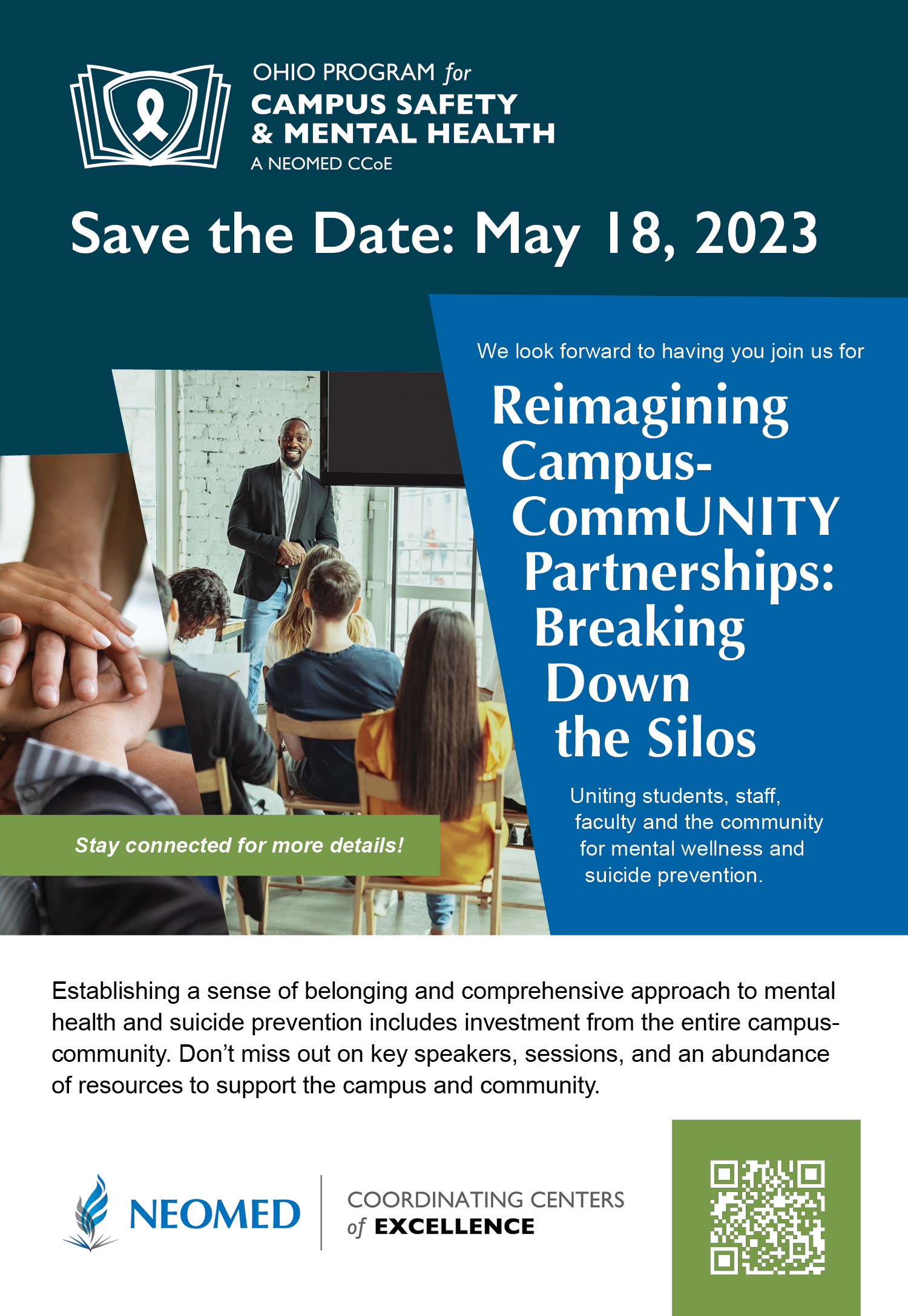 The Ohio Program for Campus Safety and Mental Health invites you to join us for the Sixth Biennial Conference on May 18, 2023! Establishing a sense of belonging and comprehensive approach to mental health and suicide prevention includes investment from the entire campus-community. We look forward to you joining us in-person!