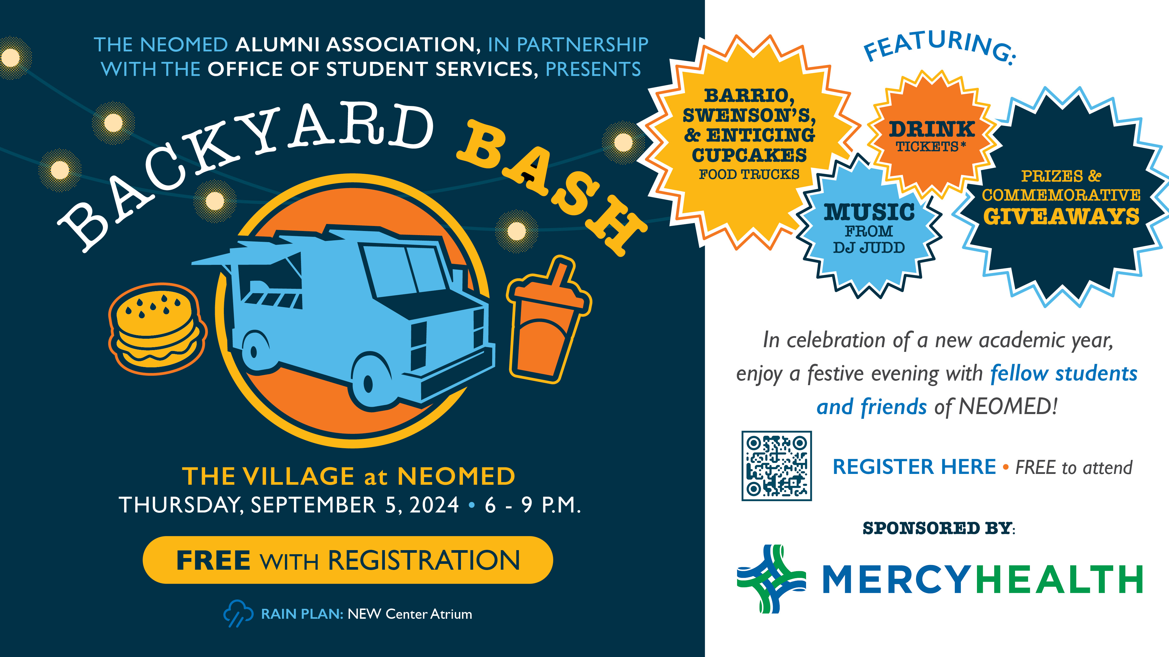 The Backyard Bash is generously sponsored by Mercy Health and brought to you by The NEOMED Alumni Association in partnership with the Office of Student Services.