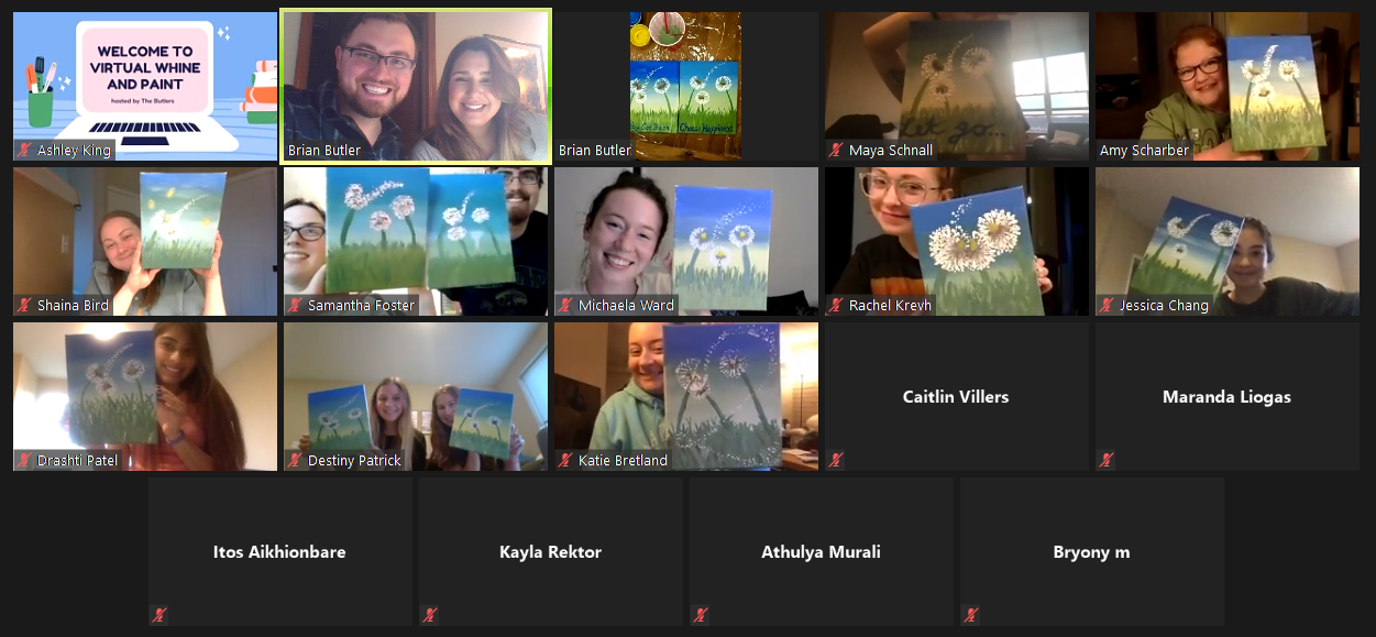 Over 90 community members registered to participate in the week’s activities, participating in events including virtual bingo, trivia Tuesday, whine and paint (like complain, not the beverage), cupcake pick-up, an award ceremony and morning yoga. One student said, “I truly appreciate you both taking the time out of your day to host that awesome evening,” in regards to the virtual painting class.